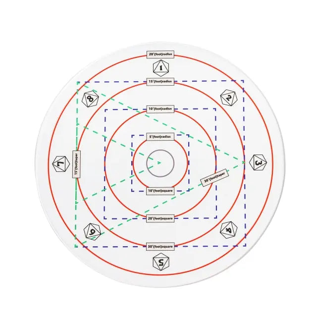 A guide to settle disputes about areas of effect. Product is translucent, allowing battlemap lines to be seen through the product when laid flat.